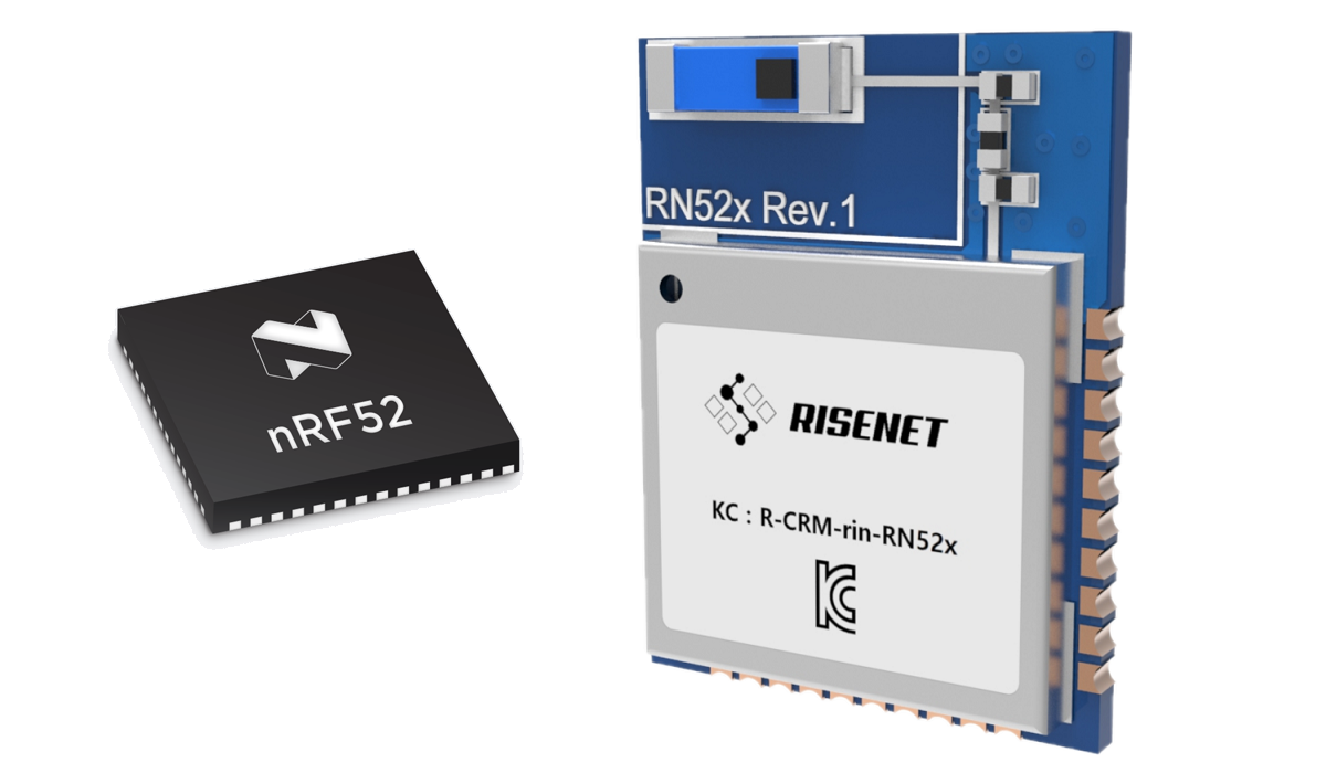 RN52x 는 Nordic Semiconductor 의 nRF52832 를 기반으로 만들어진 BLE / 2.4GHz Proprietary 모듈이며 Bluetooth 5 를 지원합니다.